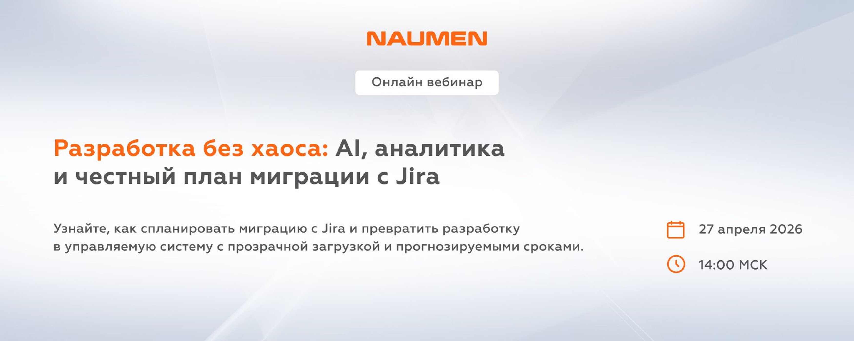 27 апреля в 14:00 МСК на вебинаре эксперт компании расскажет, как на базе Naumen Project Ruler выстроить управление разработкой как систему с понятной аналитикой, прогнозируемыми сроками и контролем изменений.